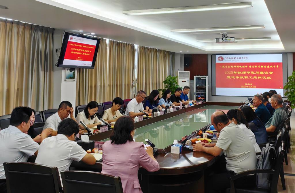 在第41个教师节即将到来之际,9月8日上午,学校工会在广州校区办公楼615会议室举办“以教育家精神铸魂强师,谱写教育强国建设华章”为主题的教师节慰问座谈会暨退休教职工荣休仪式。学校党委书记叶忠明、工会委员、荣休教职工代表、受慰问教师及相关部门负责人欢聚一堂,致敬奉献、畅谈未来。活动由校工会主席方燕主持。