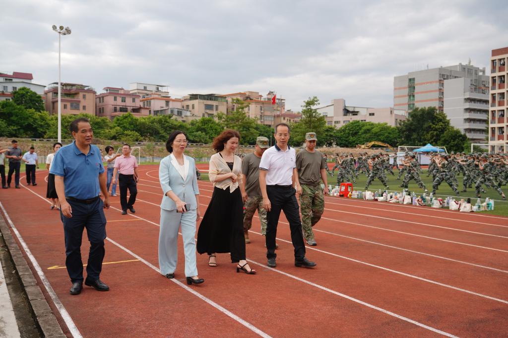 叶忠明书记与张永强副校长来到清远校区训练场,走进各训练营队,观看各营的训练情况,深入了解军训期间的学生训练计划、训练进度和后勤保障工作,向辛勤付出的军训教官表示衷心的感谢,向刻苦参训的新生表示肯定与赞扬,向保障军训顺利开展的师生及工作人员表示亲切慰问。叶忠明书记表示,军训是大学新生开展国防教育的重要课程,希望同学们在训练中团结一致,厚植爱国情怀,增强国防观念,争做一名有理想、敢担当、能吃苦、肯奋斗的时代新人。