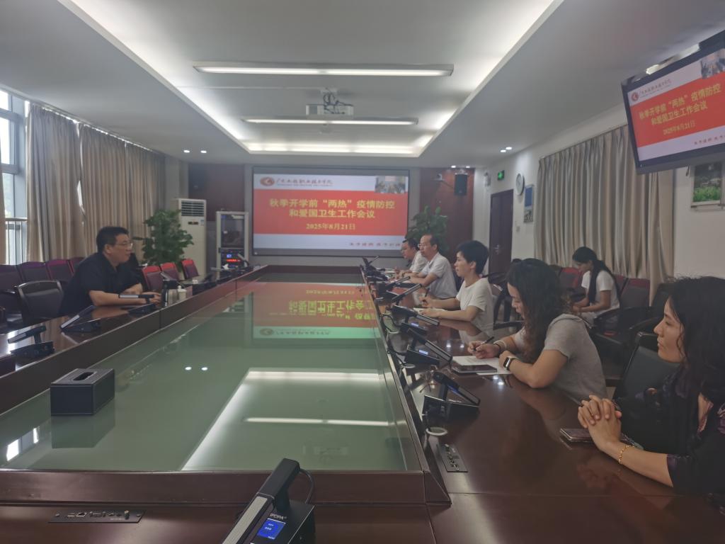 2025年8月21日,学校在广州校区办公楼615会议室召开秋季开学前“两热”疫情防控和爱国卫生工作会议,张永强副校长主持会议并讲话,党政办公室、总务后勤部、学生工作部、人力资源部、教务部、继续教育学院、宣传部相关负责同志参加会议。