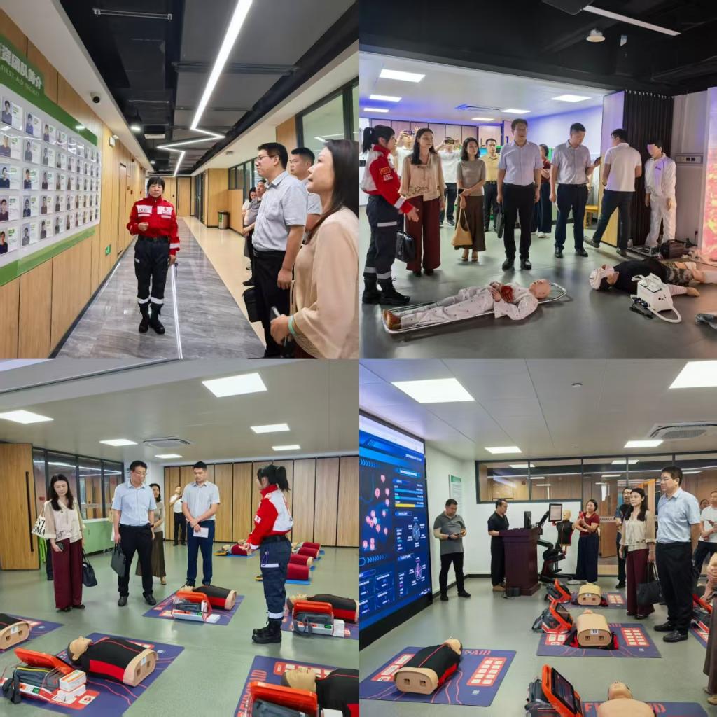 随后,到访中国红十字会广州备灾救灾中心,中心主任黄沛龙介绍了中心在救灾物资储备、现代化仓储管理、快速响应机制建设以及面向社会开展的各类应急救护培训项目,同时,对我校的急救教育基地建设提出指导建议。在生命健康安全体验馆,听取了红十字运动的起源和七项基本原则的介绍,并通过沉浸式体验和互动模拟项目,直观学习了应对突发事件、自然灾害、交通事故及日常急症的正确处置方法,掌握了心肺复苏的自救互救技能。这种寓教于乐的科普教育形式,为我校今后开展面向广大师生的生命安全教育提供了宝贵经验。
