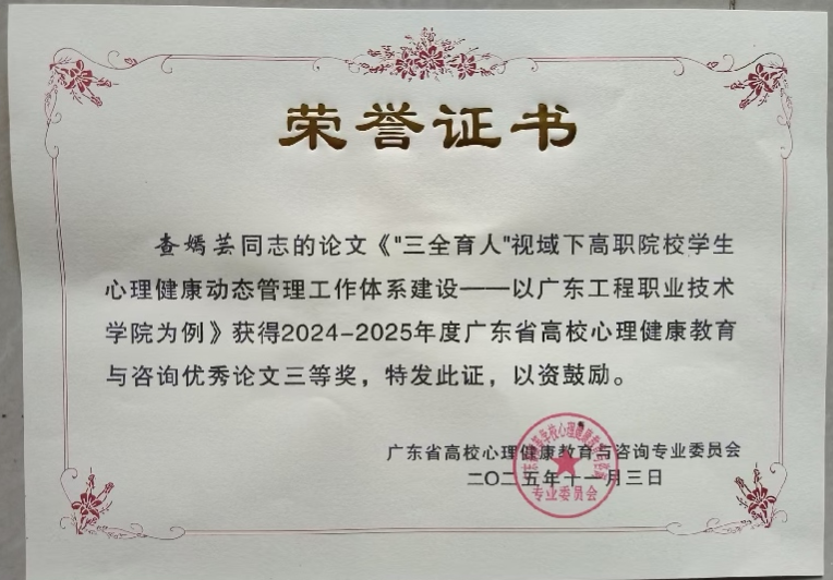 我校心理健康教育与发展中心(以下简称“心理中心”)凭借扎实的工作成效和专业贡献,荣获全省心理健康教育工作“优秀集体”奖项。