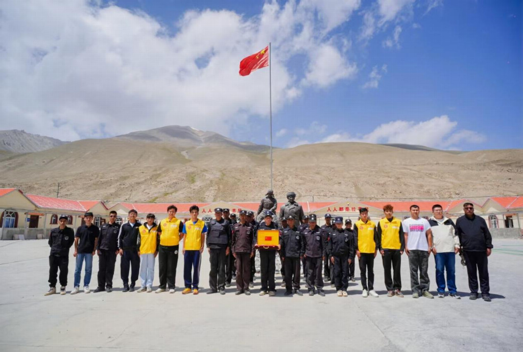 在红其拉甫口岸,当鲜艳的五星红旗冉冉升起之时,队员们捧着从天安门广场带回的国旗与国门同框,两面红旗在帕米尔高原的蓝天下同框,定格下“家国同心”的动人瞬间。